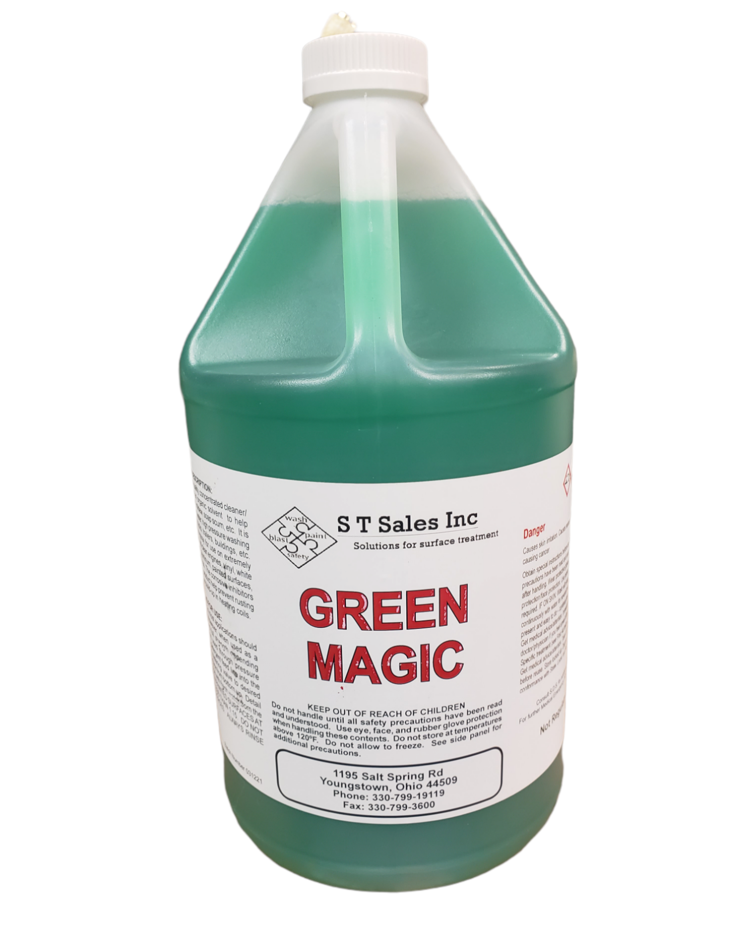 GREEN MAGIC is a 6% butyl, non-caustic cold water degreaser. It is commonly used in house washing, awning cleaning, concrete floor scrubbing and many other applications.